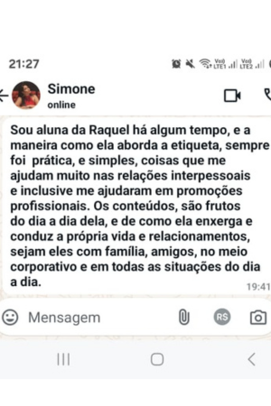 Tenho mais de 15 anos de experiência como executiva em grandes empresas multinacionais. Também já estive em mais de 10 países, com diferentes culturas e comportamentos entre eles França, Inglaterra, Irlanda, Austrália e EUA. Desde 2018, atuo como especialista em etiqueta, já tendo treinado e orientado centenas de profissionais ajudando-os a se destacar através da etiqueta.