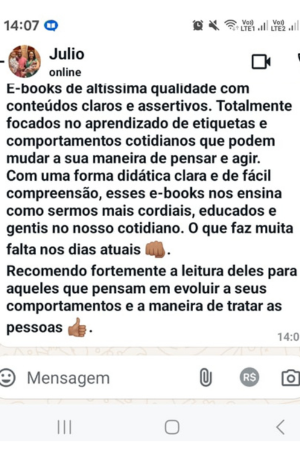 • Conteúdo Didático e Realista: Cada e-book é baseado em situações reais do dia a dia, facilitando o aprendizado e a aplicação imediata das técnicas e dicas de etiqueta.